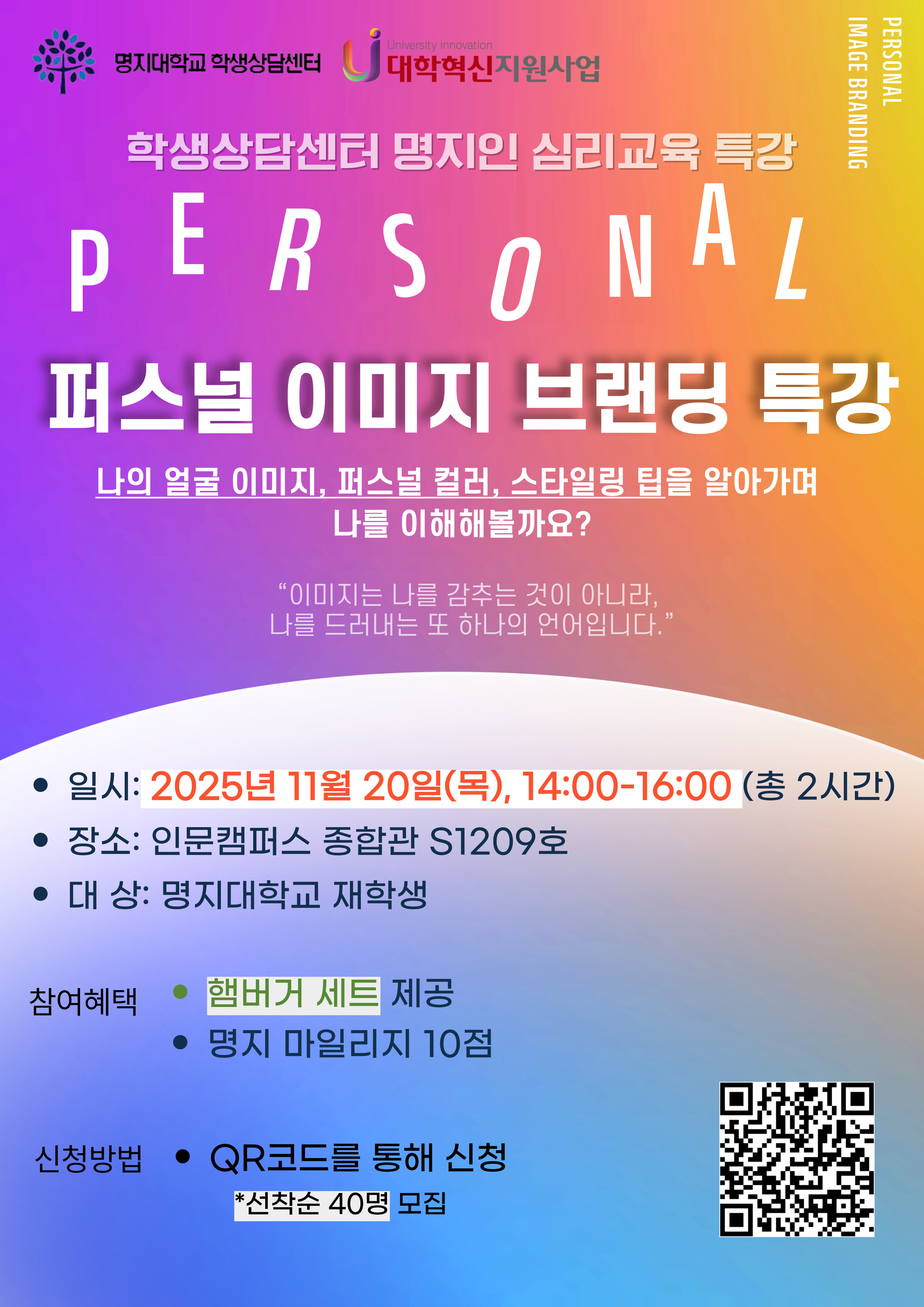 [학생상담센터] 2025-2 명지인 퍼스널 이미지 브랜딩 특강 안내