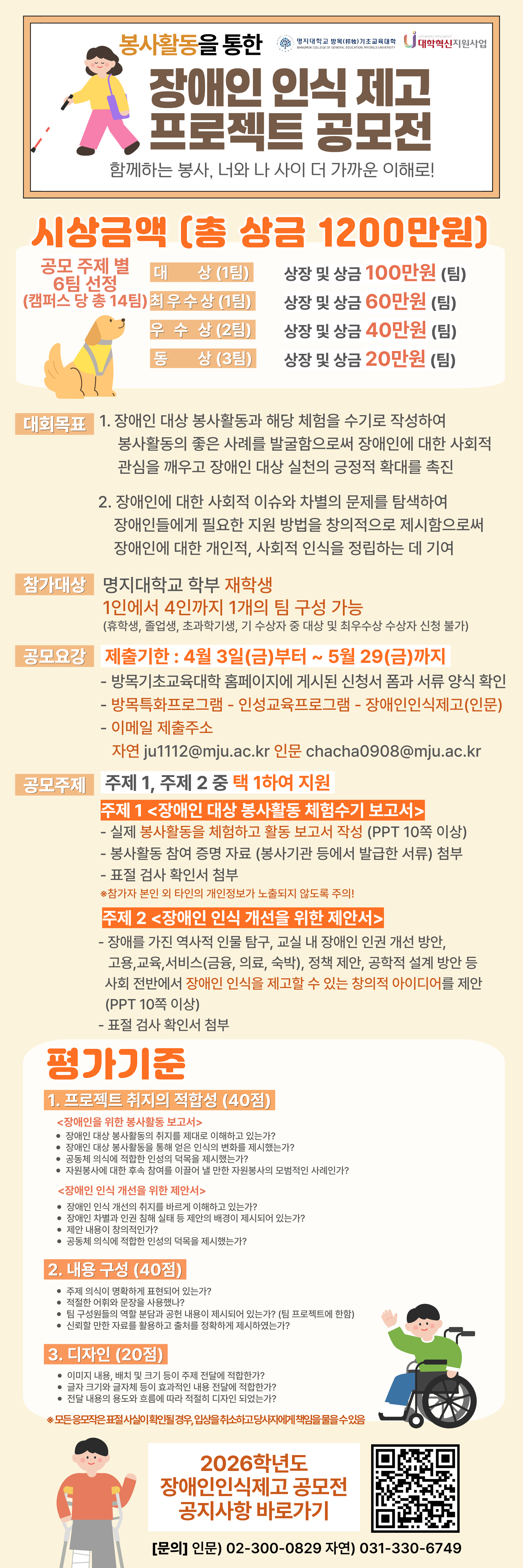 [방목기초교육대학] 2026학년도 인문/자연 제8회 장애인 인식 제고 프로젝트 공모전 안내
