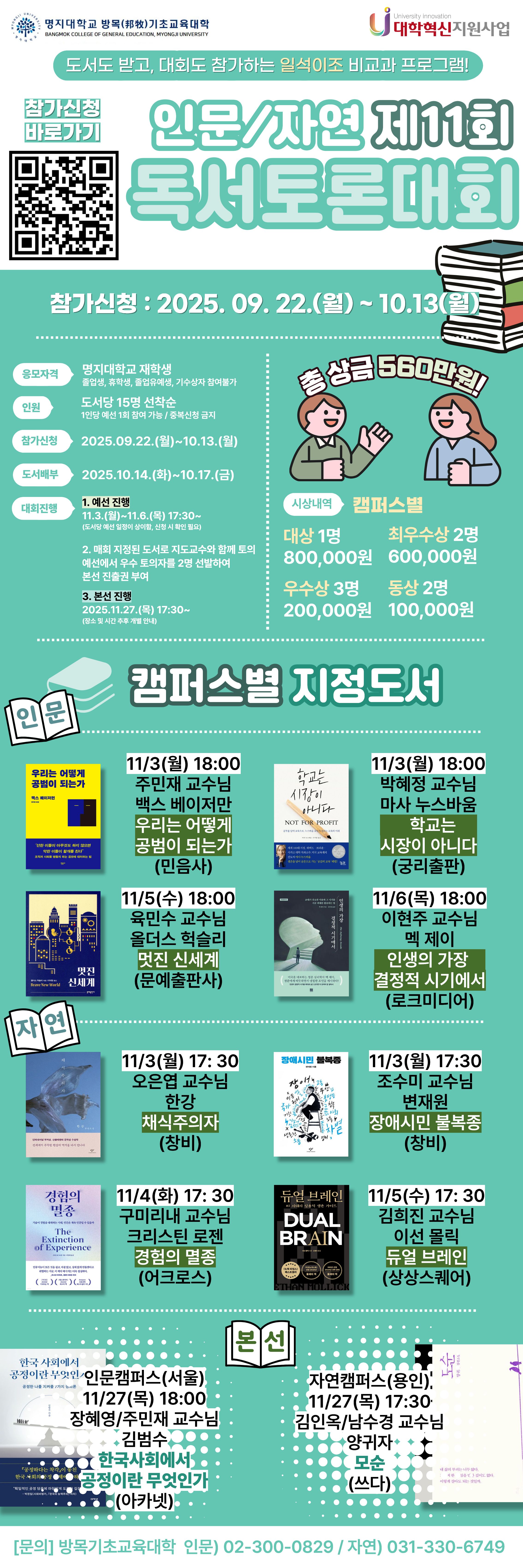 [방목기초교육대학] 2025학년도 인문/자연 제11회 독서토론대회 안내