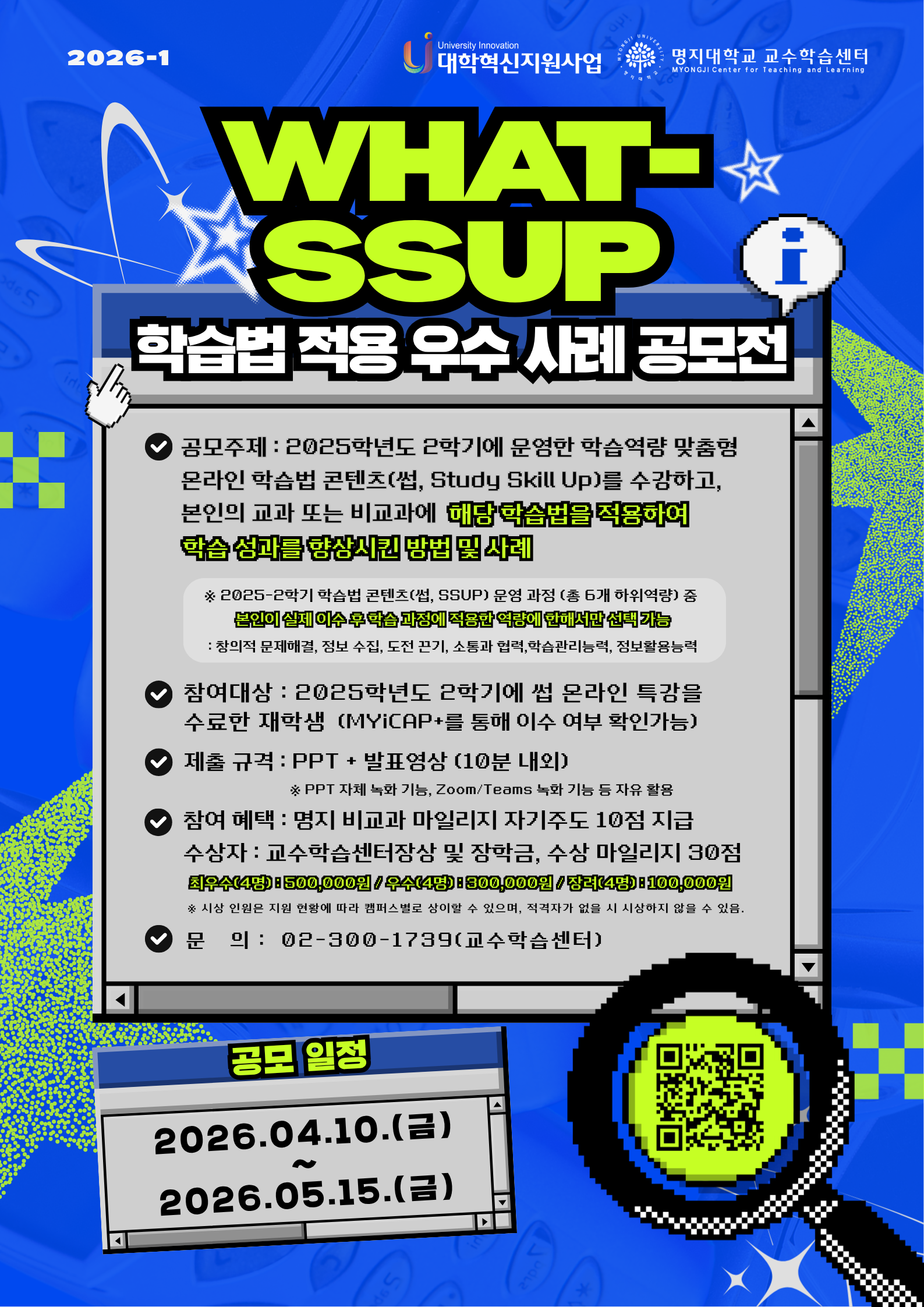 [교수학습센터] 2026학년도 1학기 학습법 적용 우수 사례 공모전 [What-SSUP] 안내